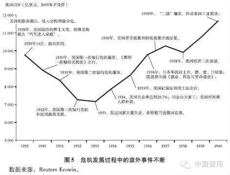 4.历史重复自己有线性方式,也有非线性方式,有符合逻辑的精准变化规律,也有逻辑不清的意外变化,甚至还有很多无法解释的历史困惑,这一切既是进行这项研究的迷人之处,也是它的难点所在。在下面的报告中,我们将按照马克思主义的分析方法,归纳两次危机的不同点,试图总结出两者的共性特点,并得出初步的政策结论。由于历史事件和比较的对象极为宏观,可以用于翻阅资料和进行数据比较的研究时间十分有限,我们的描述选择了较为粗略的方式,描述的重点是“是什么”而不是“为什么”。即便是对“是什么”的描述也十分困难,因此这项研究大纲仅是更深入研究的起点。